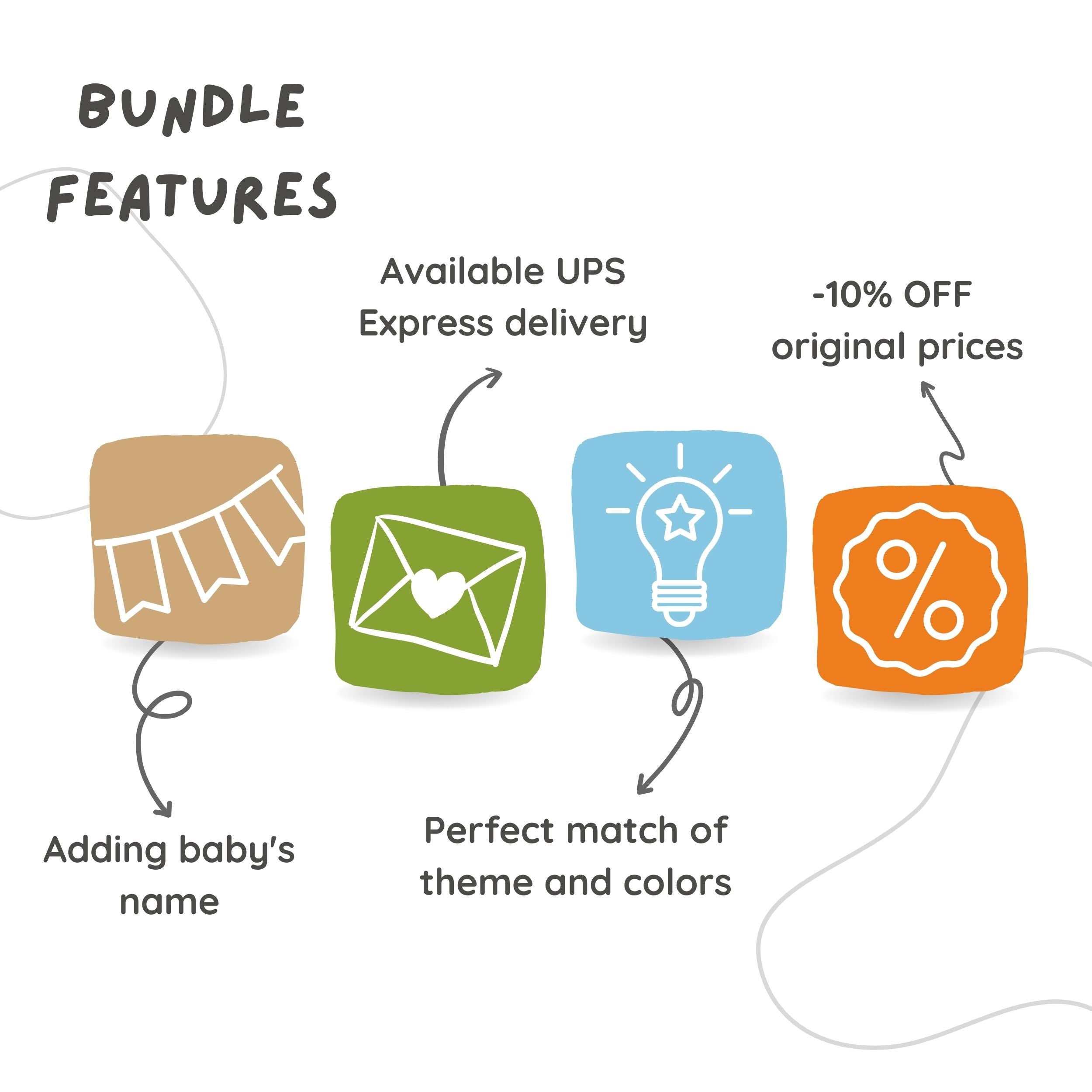 ⇒ If you like to add Baby's Name to the Happy Birthday Banner, please choose in Drop Down Menu Bundle Size "Medium+Name banner" or "Large+Name banner" during the check out