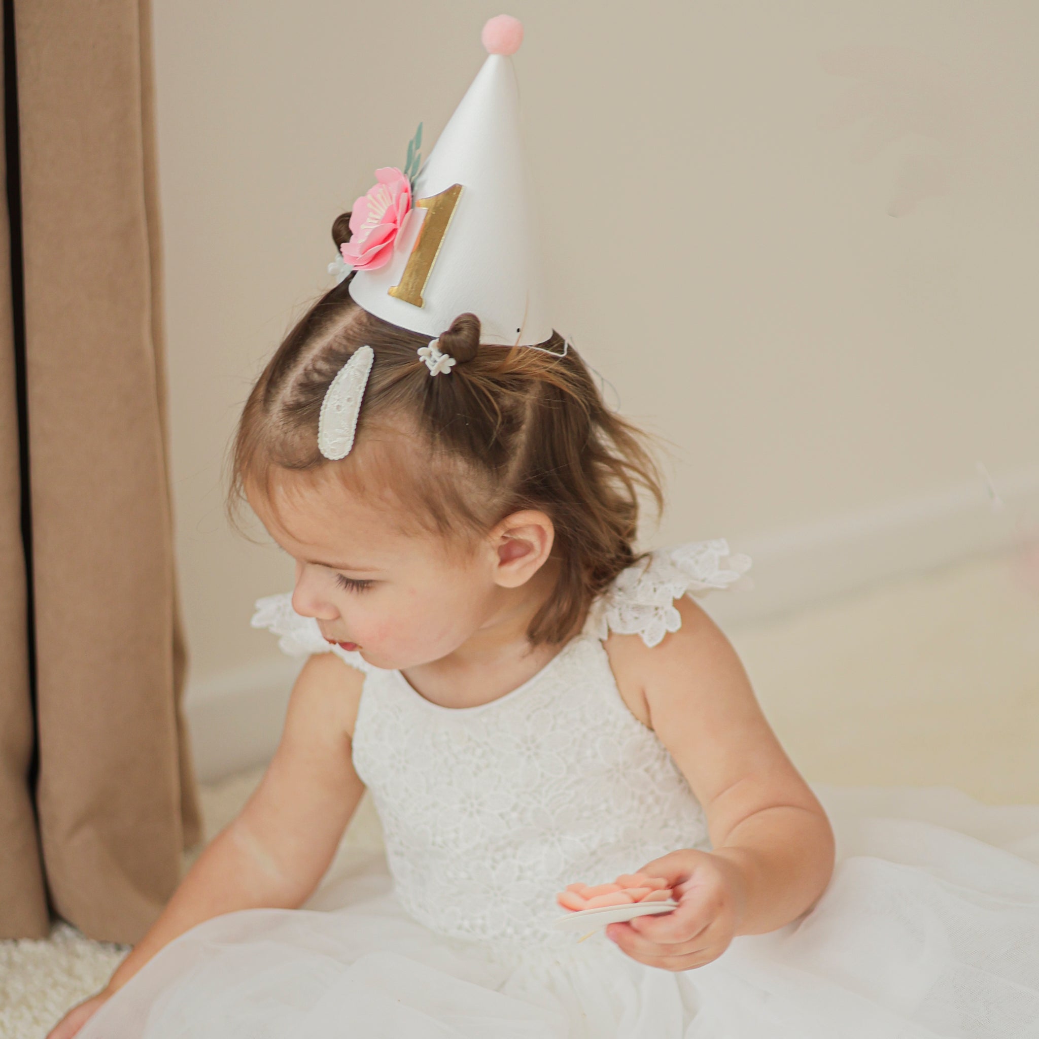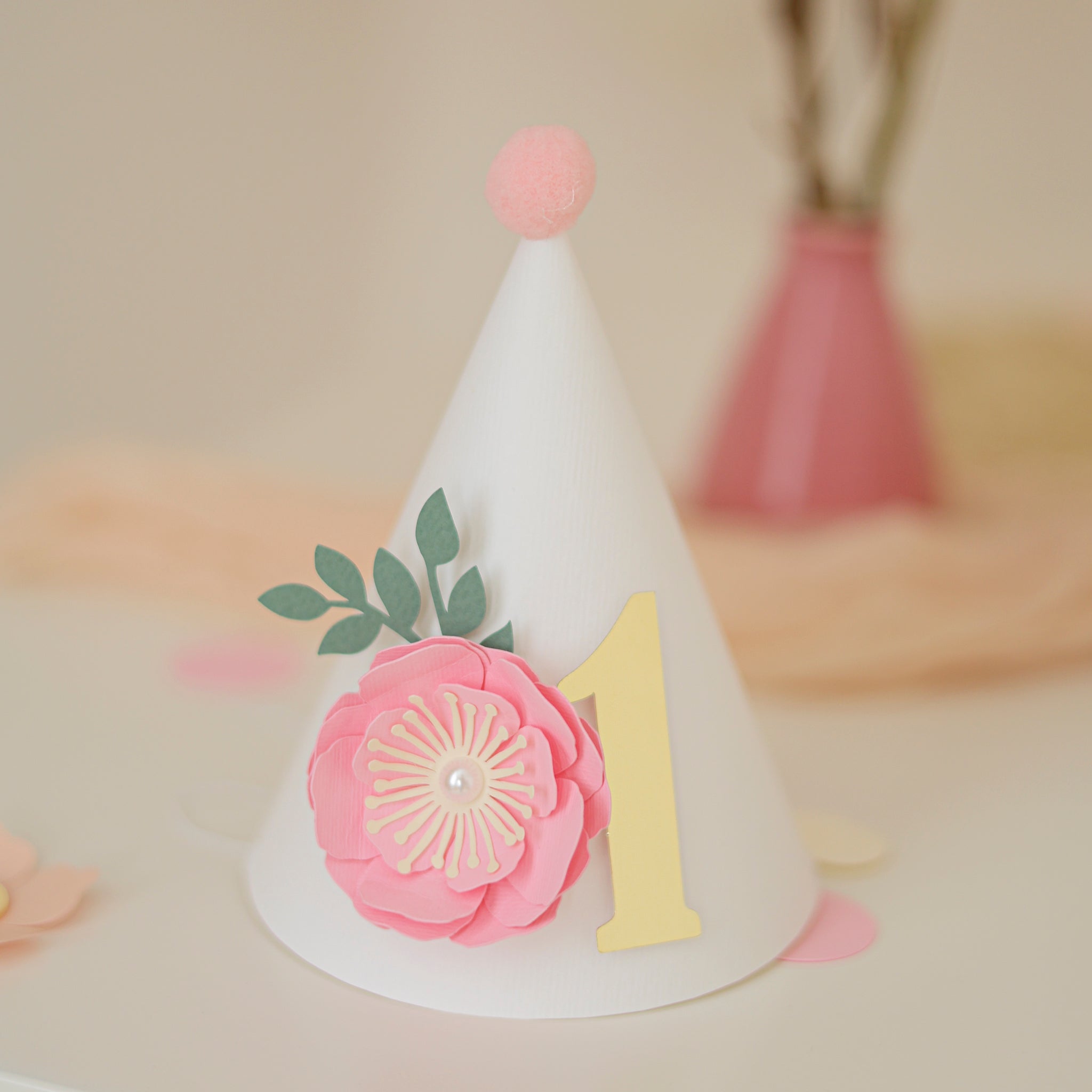 Onederful Birthday Hat, Baby Girl 1st Birthday Decor, Floral Party Cone