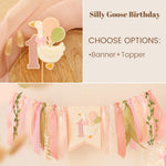 This super cute One Silly Goose High Chair Banner is perfect for celebrating first birthday! Hang the banner on a high chair, wall above the party table, or as a backdrop for fun photos. A great idea for cake smash! Designed to matching One Silly Goose, Vintage Goose Birthday party.