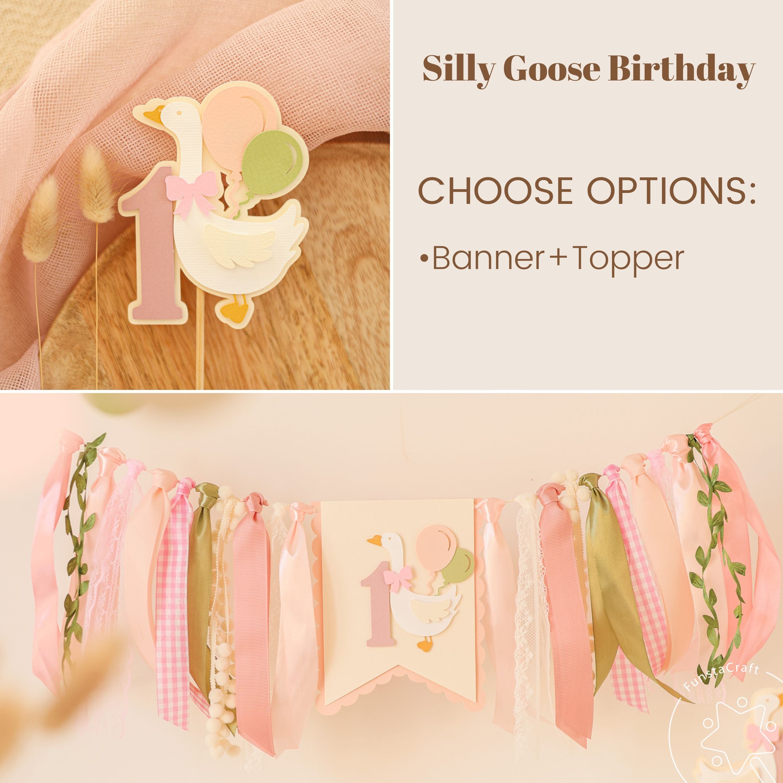 • Includes pennant with a goose, balloons, number and embellished with cutest ribbon different texture trims