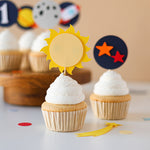 Blast off to a stellar celebration with our "First Trip Around the Sun" cupcake toppers!