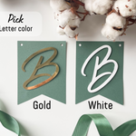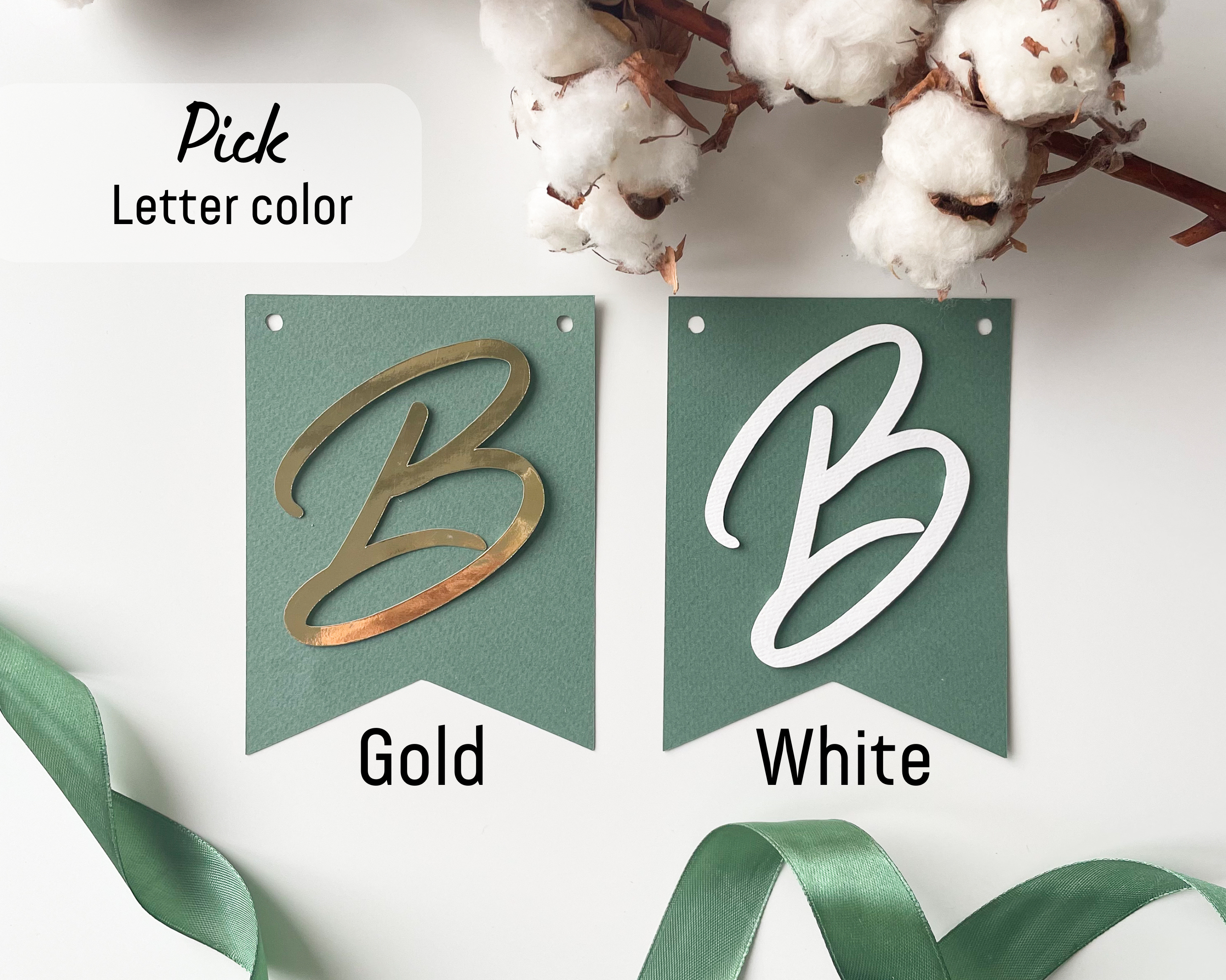 • Color & Style: Features deep sage green pennants with shimmering gold foil 3D lettering and a sweet gold heart detail. The aesthetic is perfect for woodland, minimalist, vintage, or earthy themed celebrations.