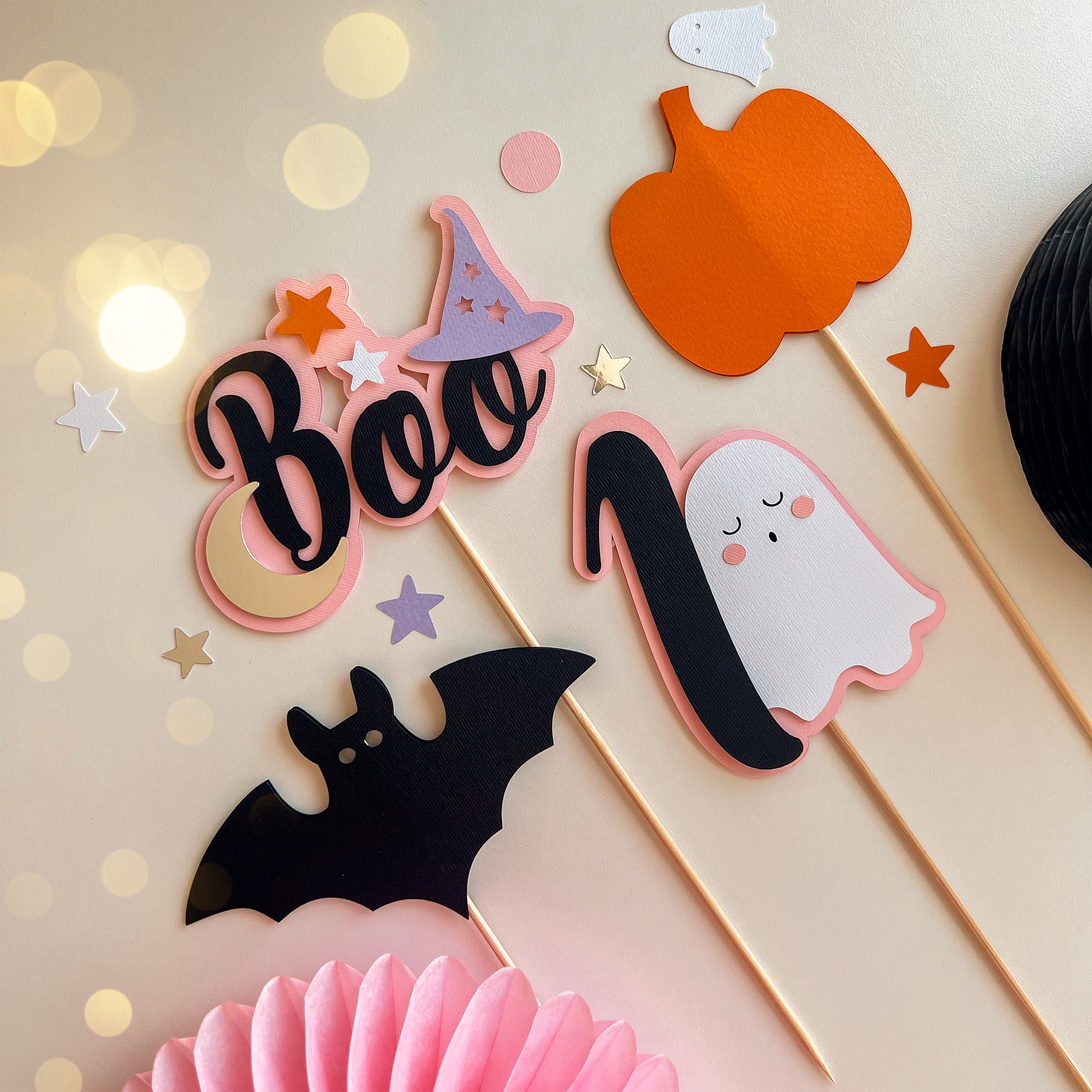 - Cupcake and cake toppers, as well as other dessert decorations. Even the simplest sweets can become themed when adorned with fun toppers like witch hats, bats, pumpkins, or ghosts