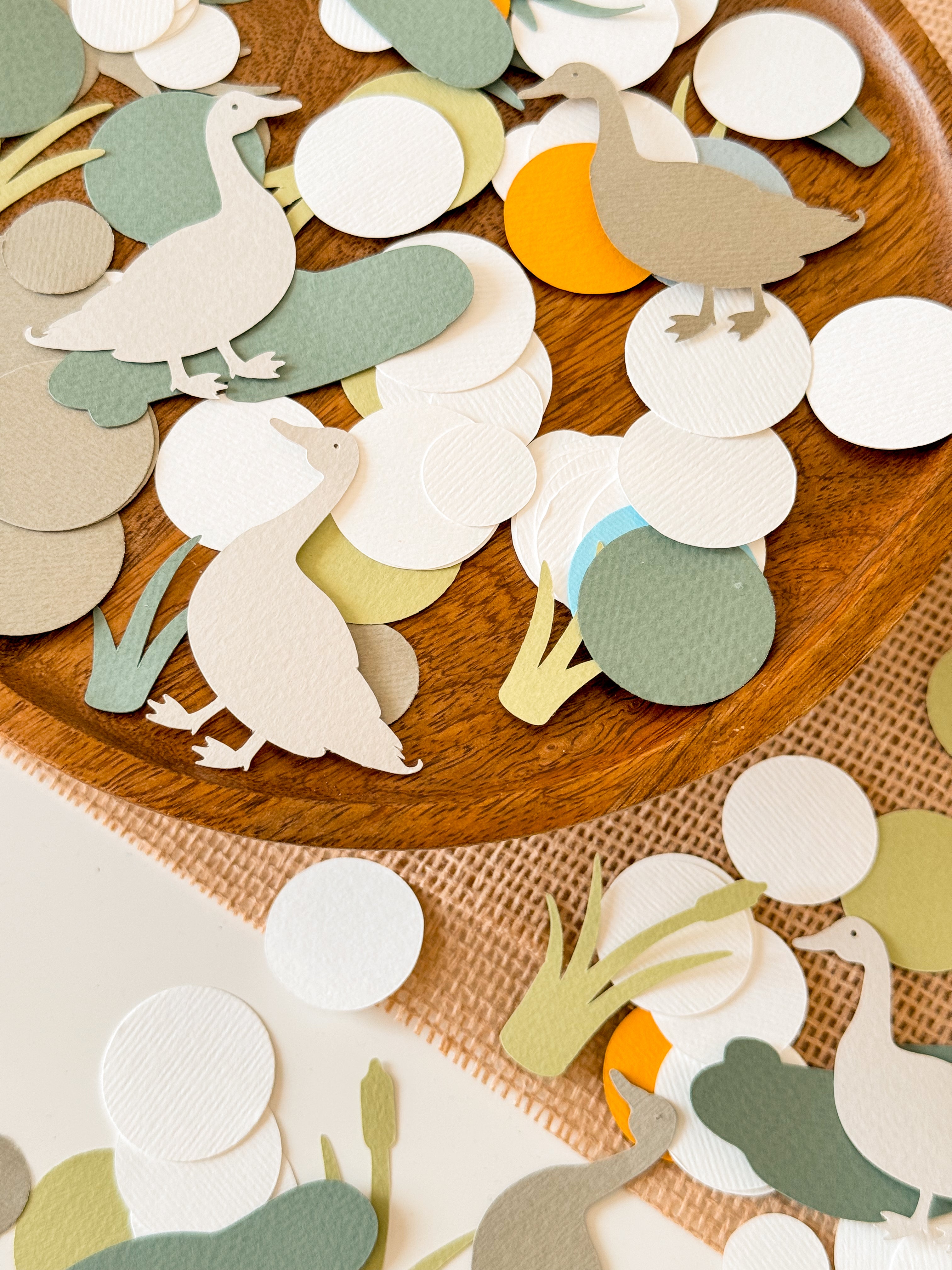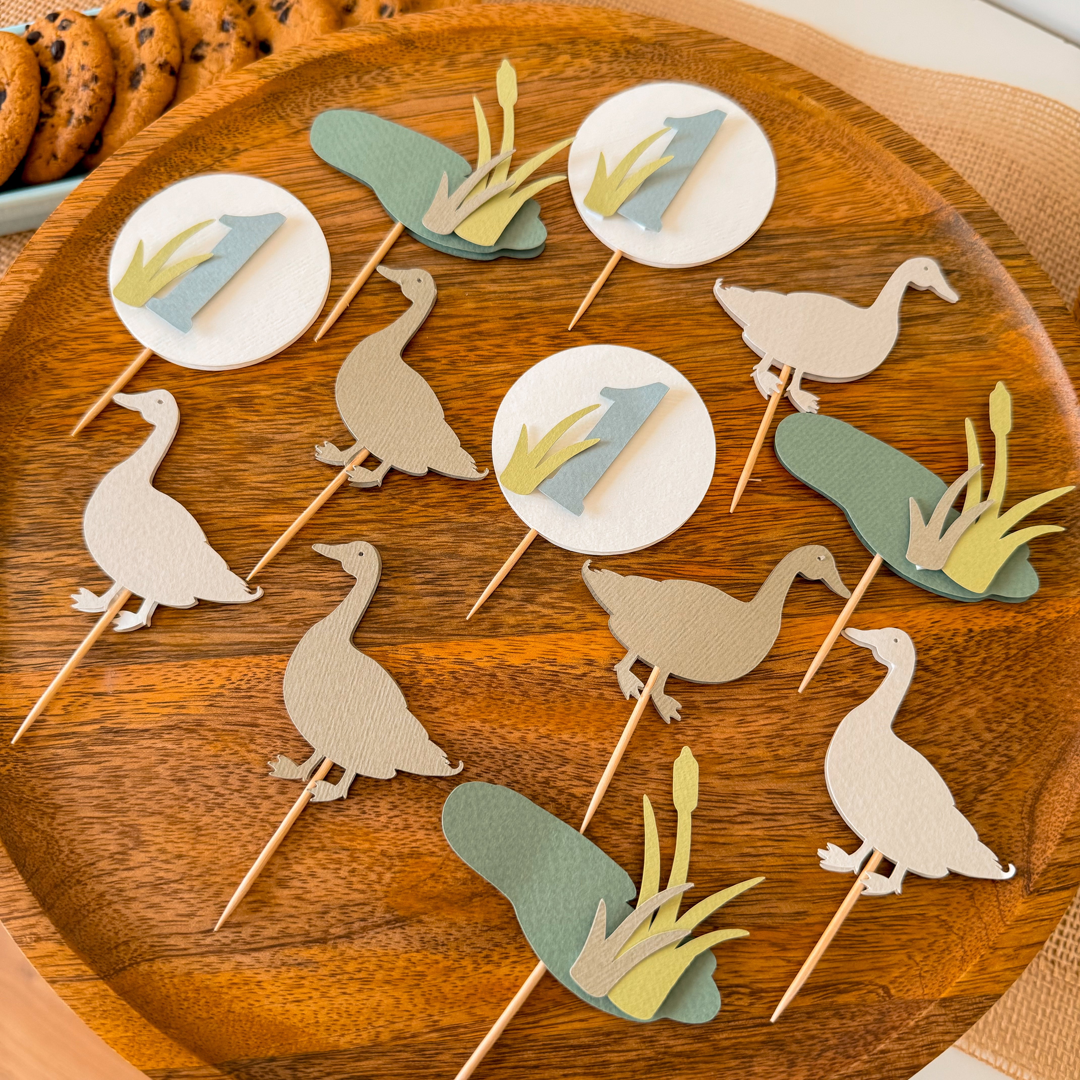 When it comes to adorning a duck-themed party, the opportunities for creativity are boundless. To spark your imagination, consider showcasing an eye-catching banner in warm sand, orange, blue, tan, green colours that reflect the hues of mallard ducks.