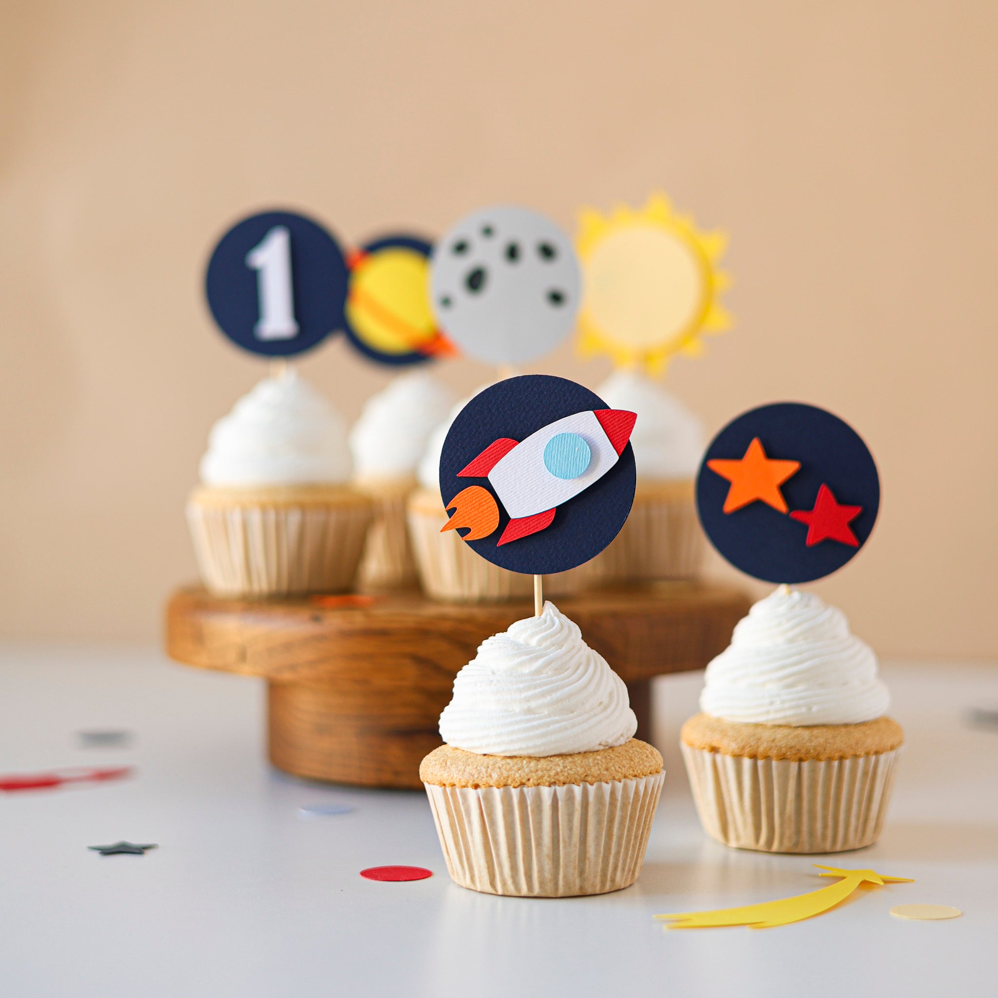 • Rocket One Cake Topper ⇒ attached to wooden stick; 3D - Consists 3 layers
