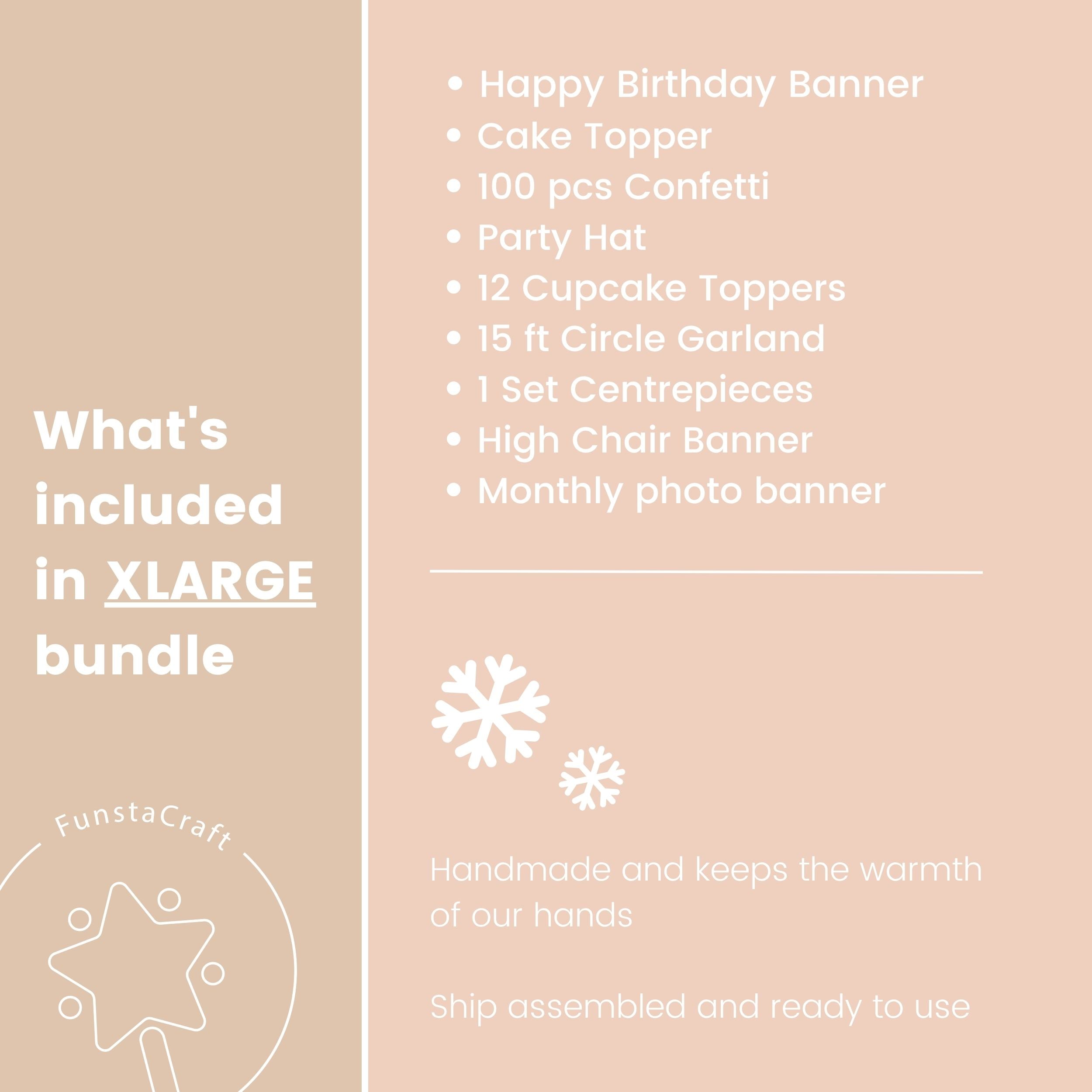 So, if your child’s first birthday falls during the winter season, you can create a unique decor setup and organize a celebration filled with a fairy-tale atmosphere of magic and winter festivities. You can order Winter Onederland-themed decorations for the birthday girl or boy right now on our website. We offer handcrafted decor and a huge selection of accessories for your celebration.
