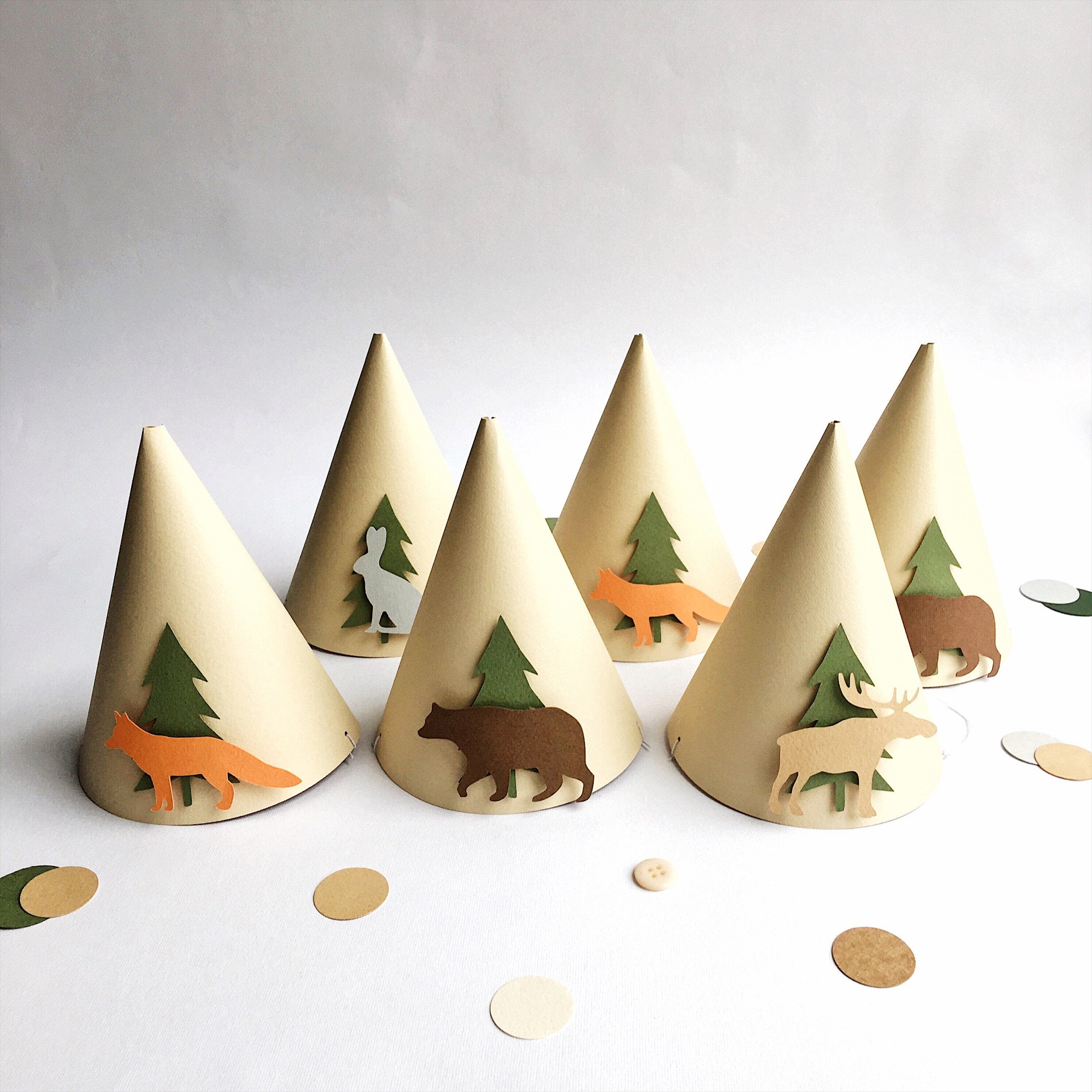 - Woodland Cupcake Toppers and woodland party hats featuring foxes, bears, or deers
