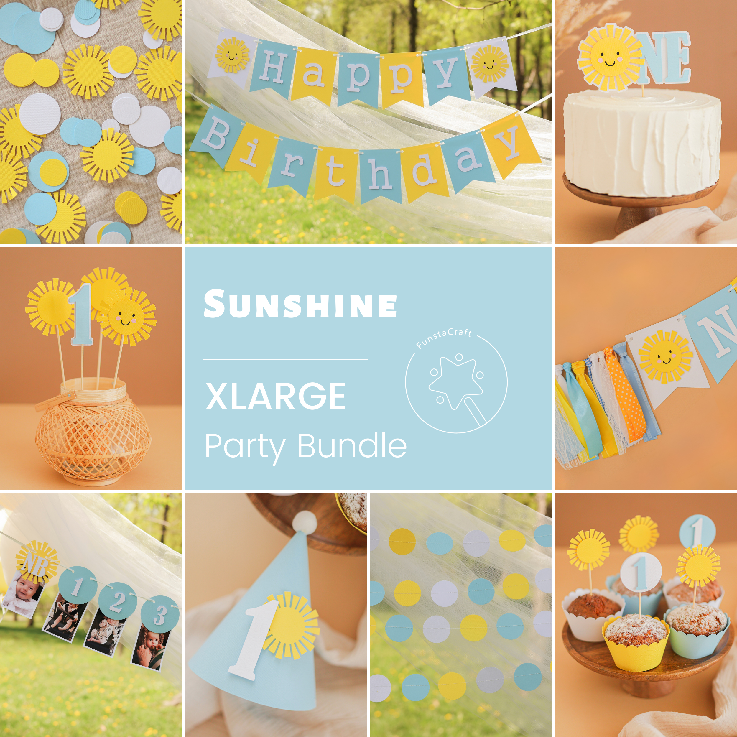 Celebrate your little one's first birthday with the Sunshine First Party theme. Featuring bright colors and festive décor, this collection is sure to bring joy to your little one's special occasion. Bring sunshine and fun to your first birthday party.