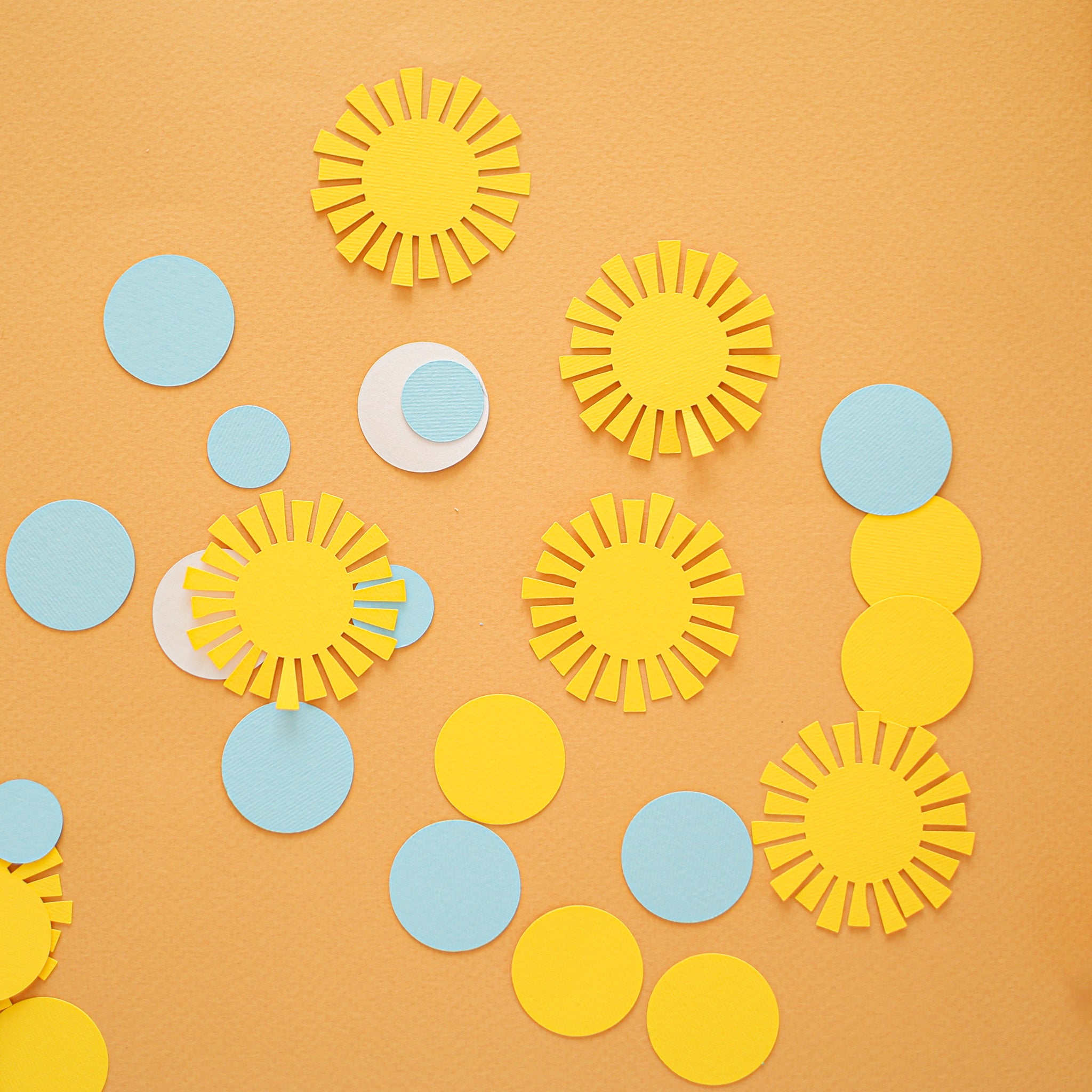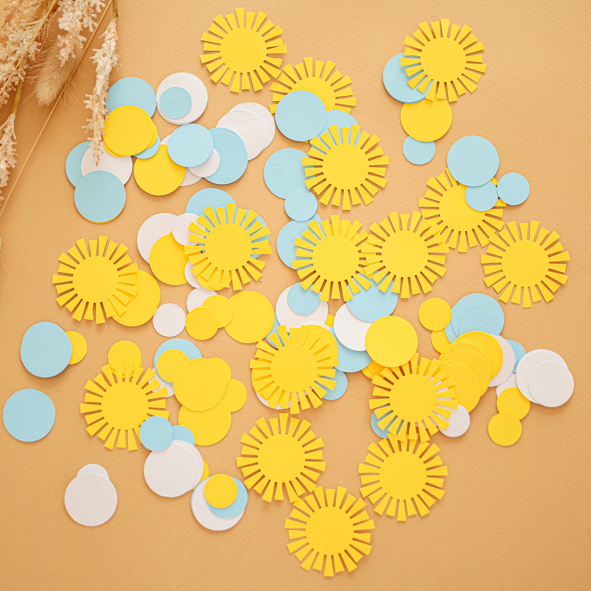 The colours that work best in this theme are Yellow, Baby Blue, and White - when used intermittently in the garland, they create an effect that reminds us of rays of sunshine dancing on water. To add more texture to your snack table, you could consider sprinkling confetti shaped like little suns alongside blue and white circles to create the illusion of a summer sky. And if you want to make things even easier for yourself, don't forget about our bundle option! By ordering a whole set of perfect ingredients for your celebration, you can rest assured that your party will be full of radiant smiles and warm memories that will last a lifetime. So go ahead and let it shine - with the sunshine birthday party theme, there's no limit to the warmth and cheerfulness you can bring to your special occasion!