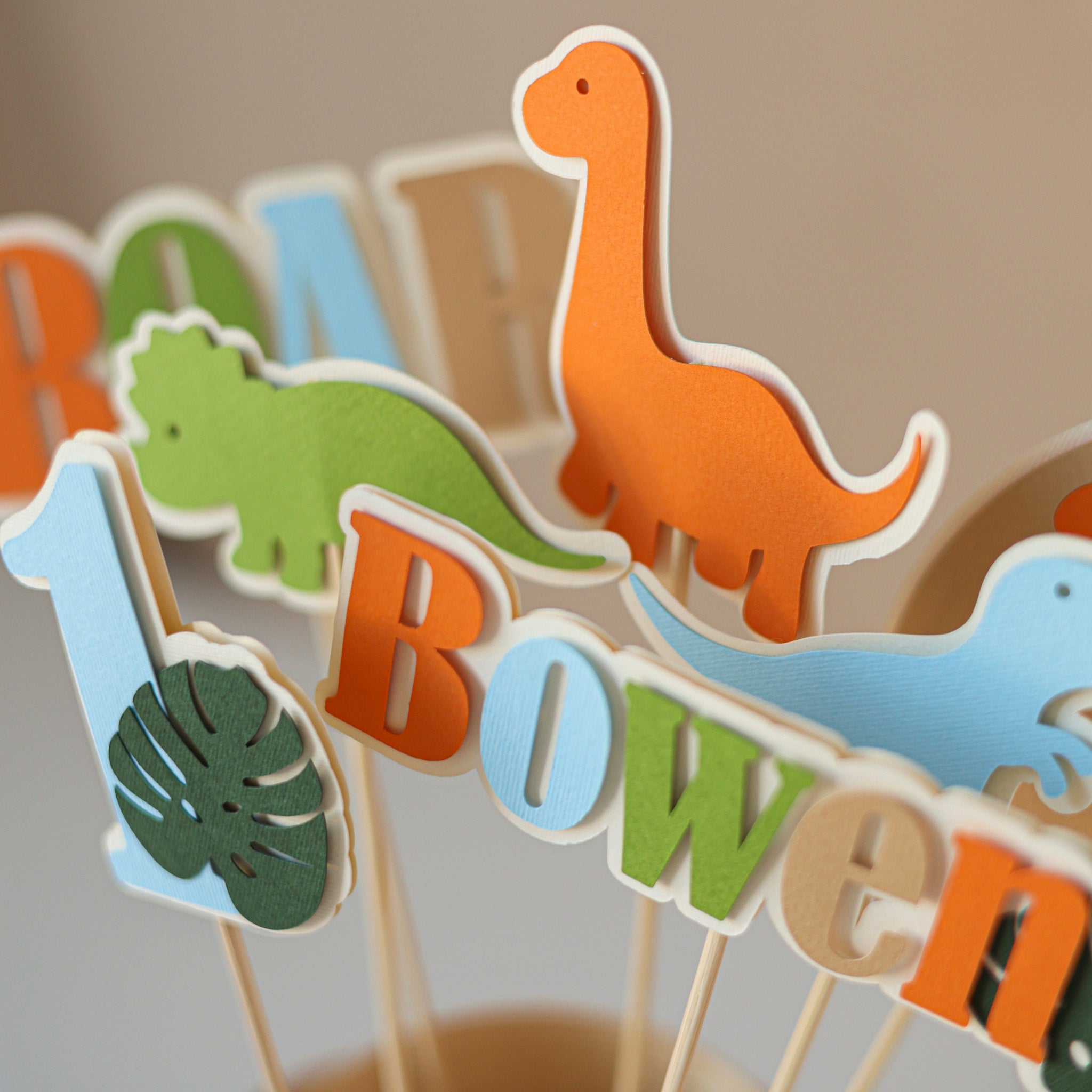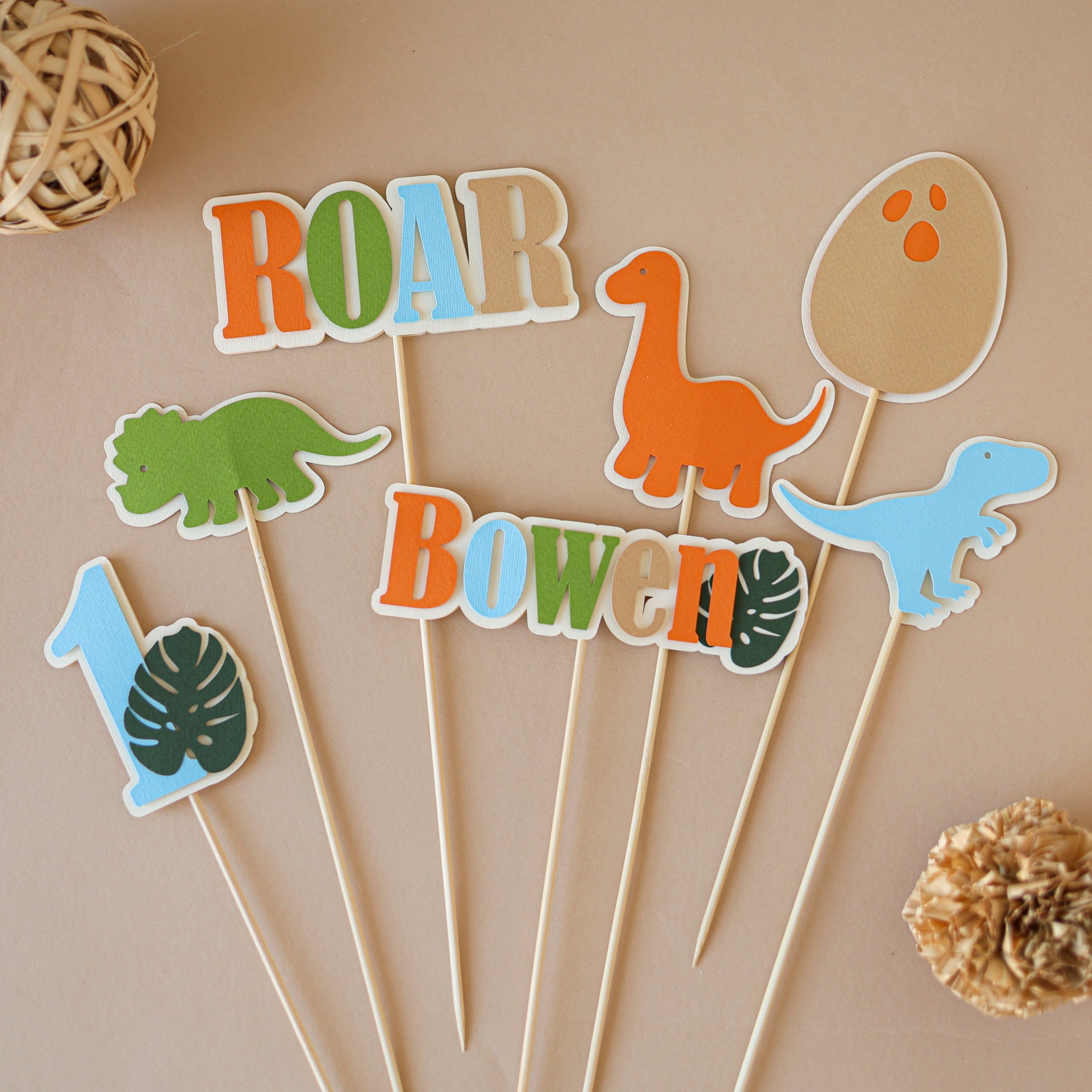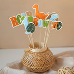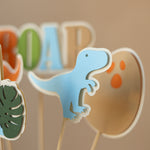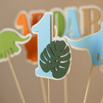 Perfectly curated for a Oneasaurus 1st birthday, this set features a charming mix of prehistoric pals and earthy tones. These versatile toppers work beautifully as floral arrangement inserts, cake toppers, or standalone centerpieces in jars or vases.