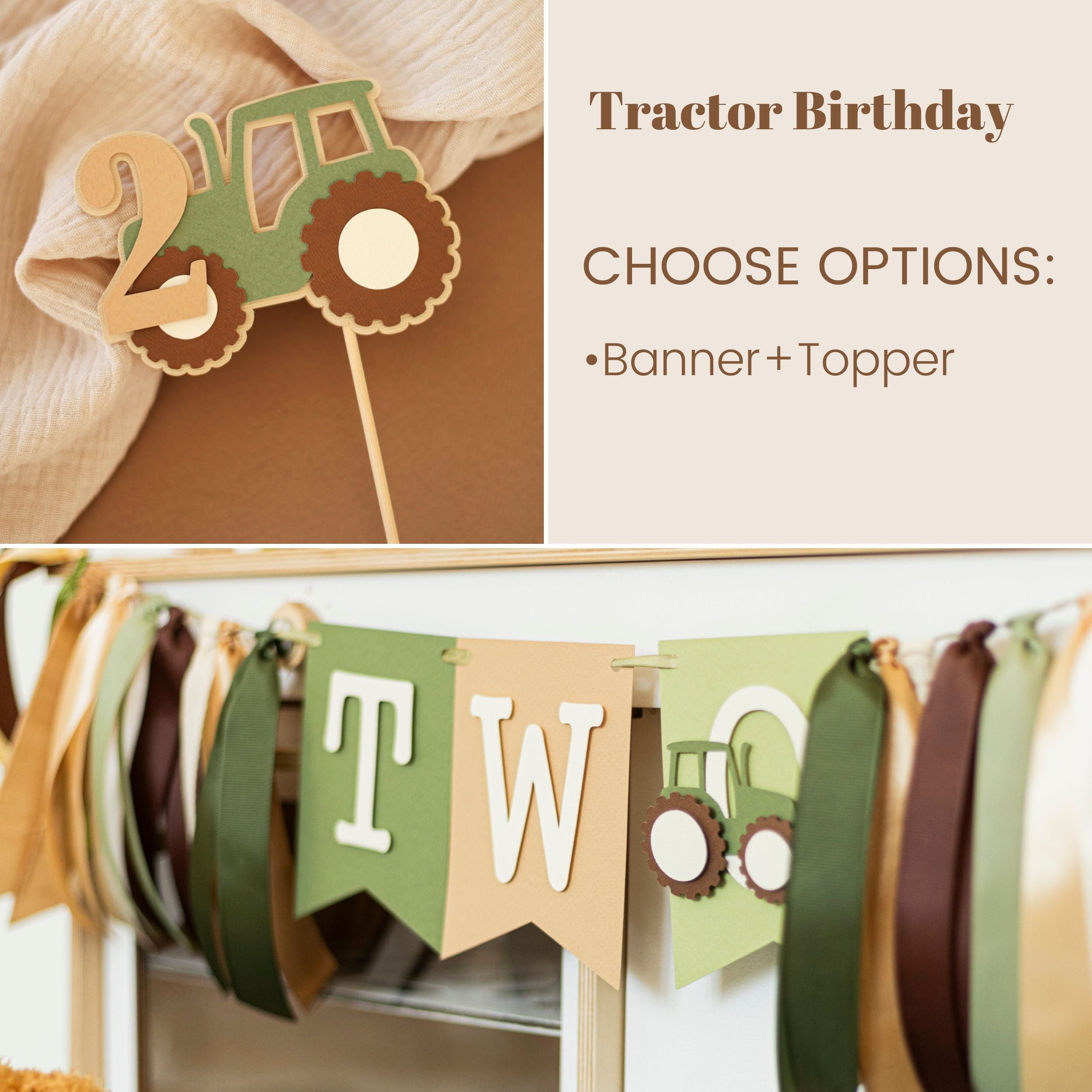 This super stylish Tractor TWO Highchair Banner is perfect for celebrating Farm first birthday! Hang the banner on a high chair, wall above the party table, or as a backdrop for fun photos. A great idea for boy cake smash! Designed to matching Tractor or Farm theme Toddler Birthday.